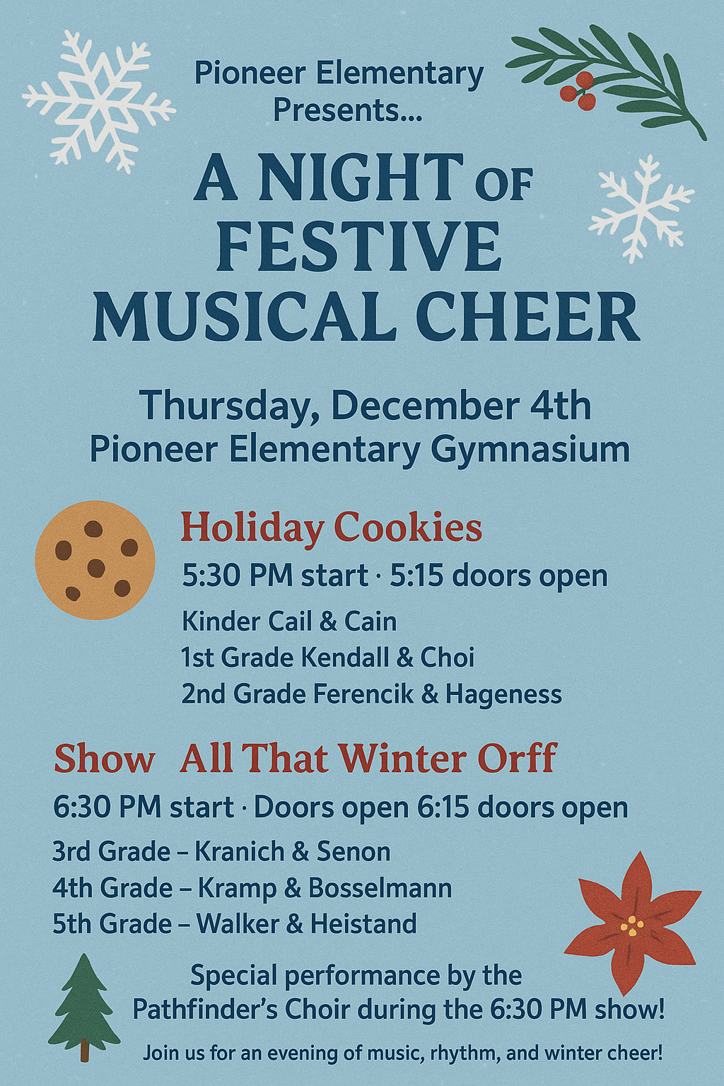 • Friday, Dec. 19th: Winter Assembly w/ GHHS Choir @ 9:30